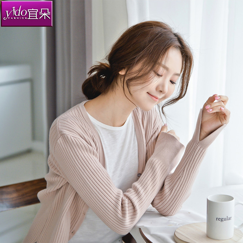 / 春季新款女針織開衫女修身v領長袖針織衫女毛衣外套女開衫厚
