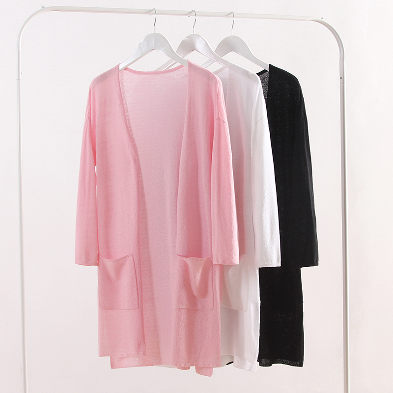 / 中長款針織衫開衫女薄春季寬松中袖防曬衣衫針織開衫空調衫女外套