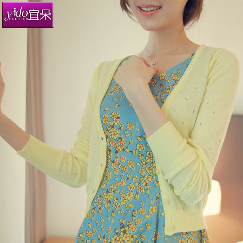 春裝新短款針織開衫女短款長袖鏤空防曬針織衫開衫女毛衣外套