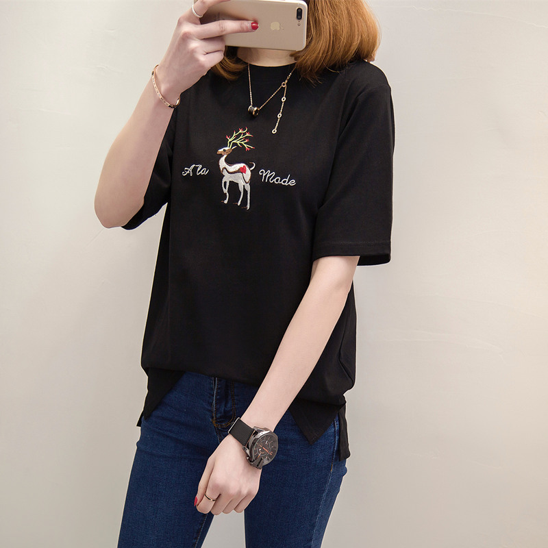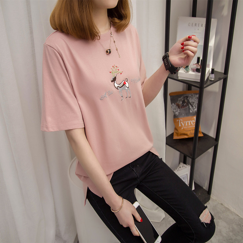 / 上衣女春裝新款潮體恤衫女上衣短袖韓版寬松純色百搭t恤女夏