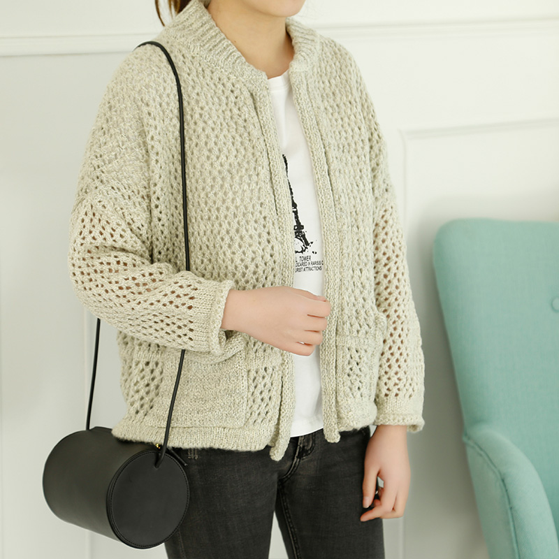 短款毛衣開衫女外套韓版寬松鏤空針織衫春裝新款上衣純色女裝