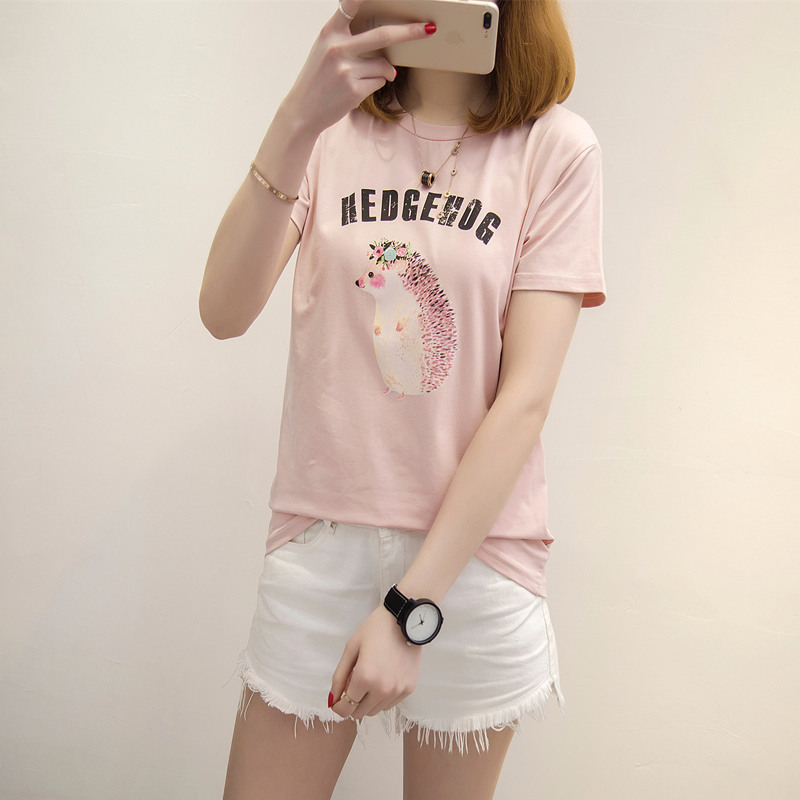夏裝新款女裝純色韓版卡通t恤女短袖上衣女夏百搭打底衣服女