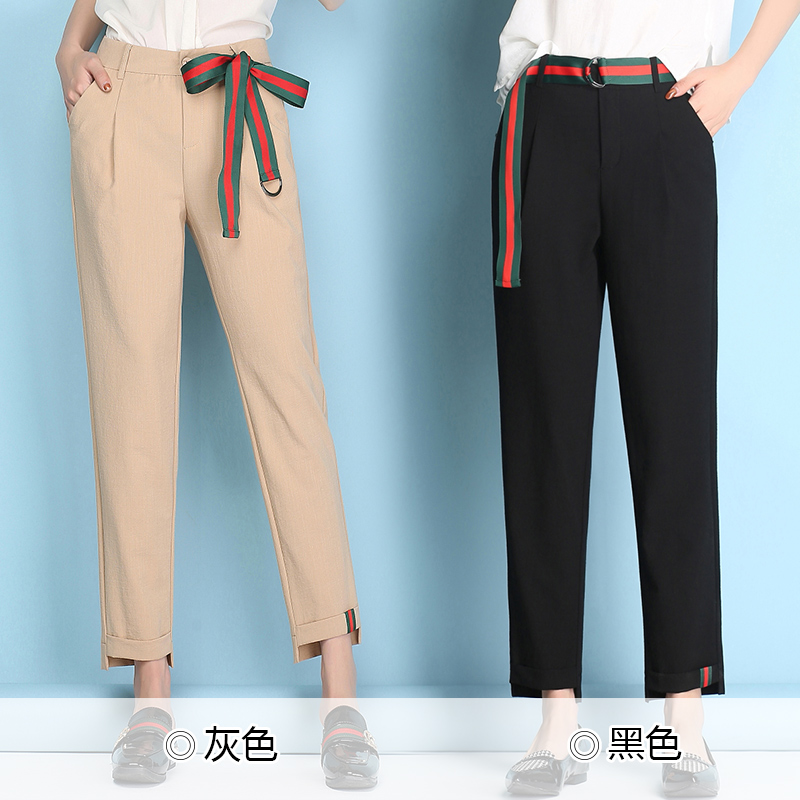 / 春夏女褲薄款哈倫褲女西裝褲九分褲小腳黑色顯瘦寬松休閑褲蘿卜褲