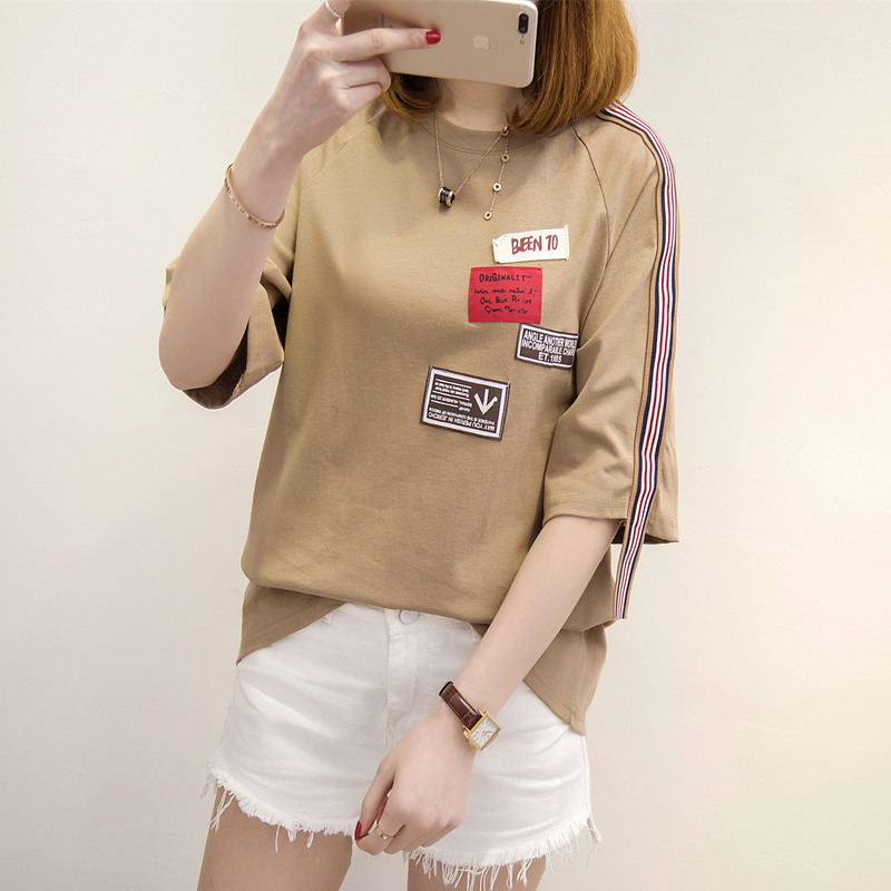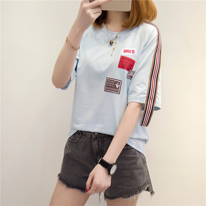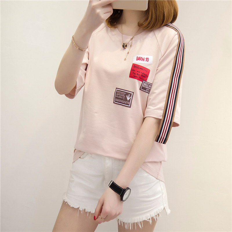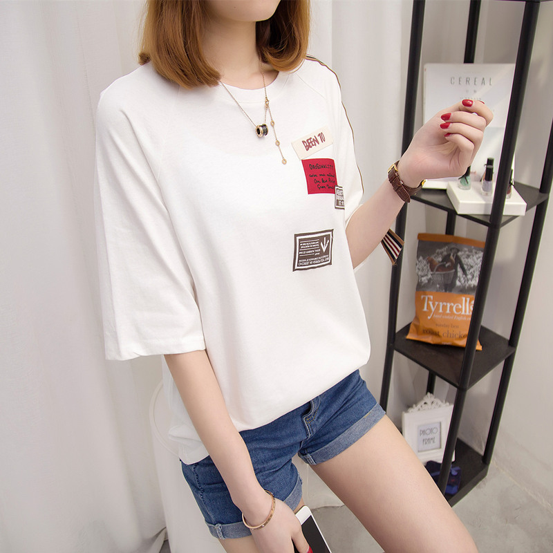 / 短袖上衣女夏新款白色t恤女中長袖寬松韓版打底體恤衫百搭潮