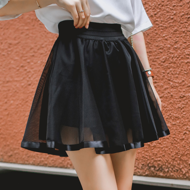 / 夏季新款學院風高腰網紗半身裙傘裙韓版學生蓬蓬裙女褲裙短裙