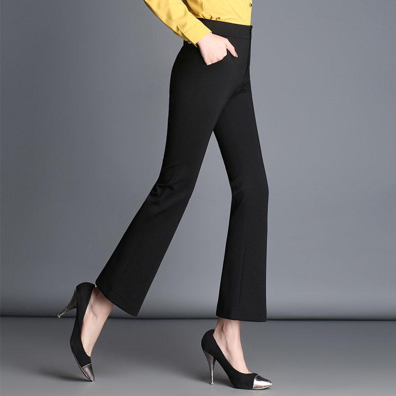 新款高腰微喇褲女九分褲彈力大碼修身直筒喇叭褲西褲休閑長褲