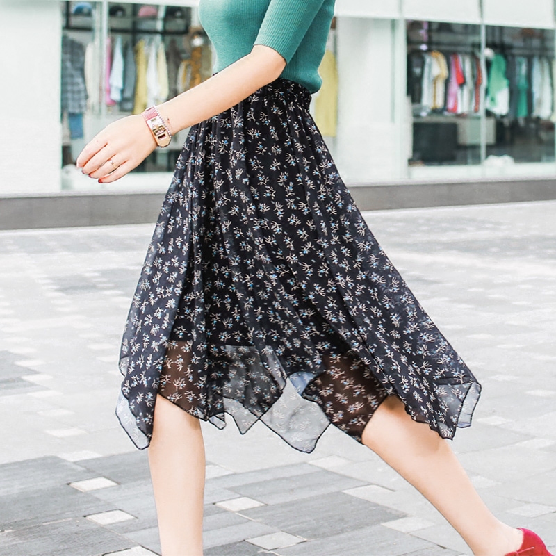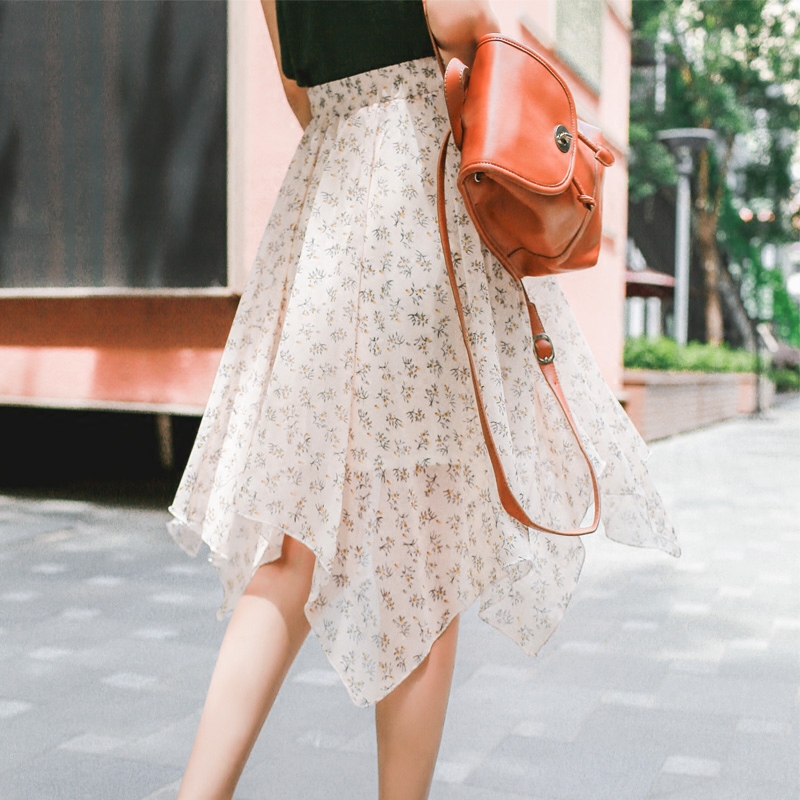 / 雪紡中長款碎花半身裙女百搭夏季新款韓版不規則仙女裙長裙子