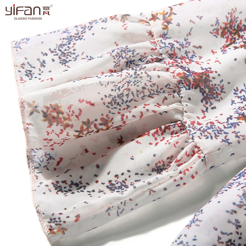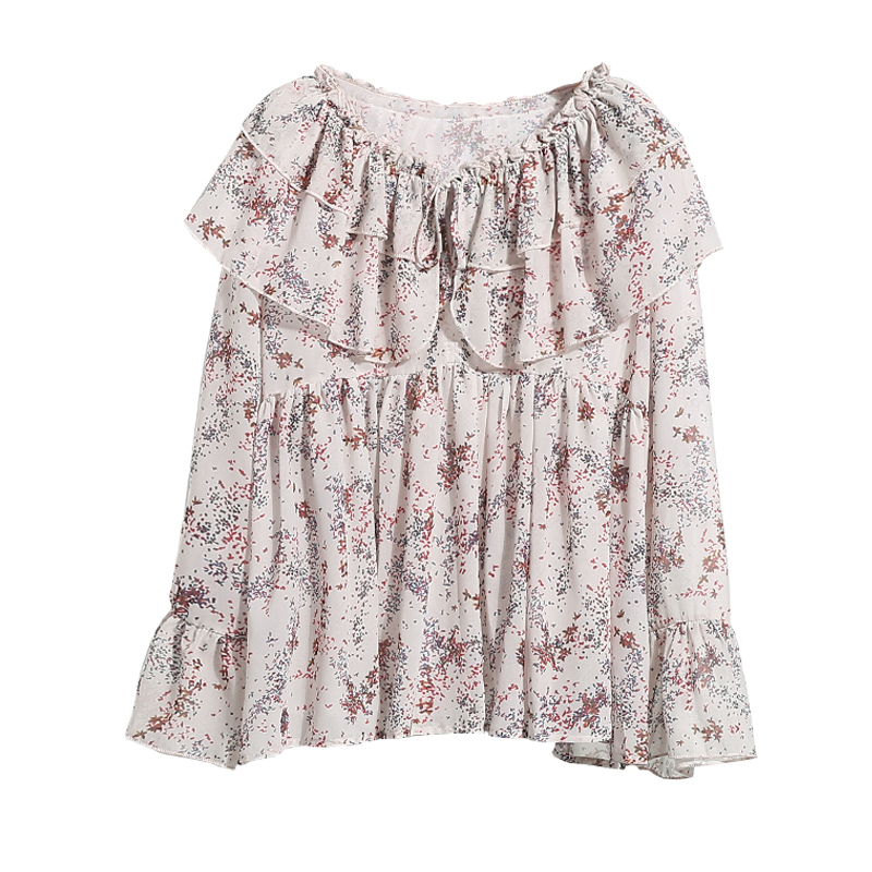 韓國春夏新款荷葉邊喇叭袖印花雪紡襯衫上衣寬松套頭碎花雪紡衫女