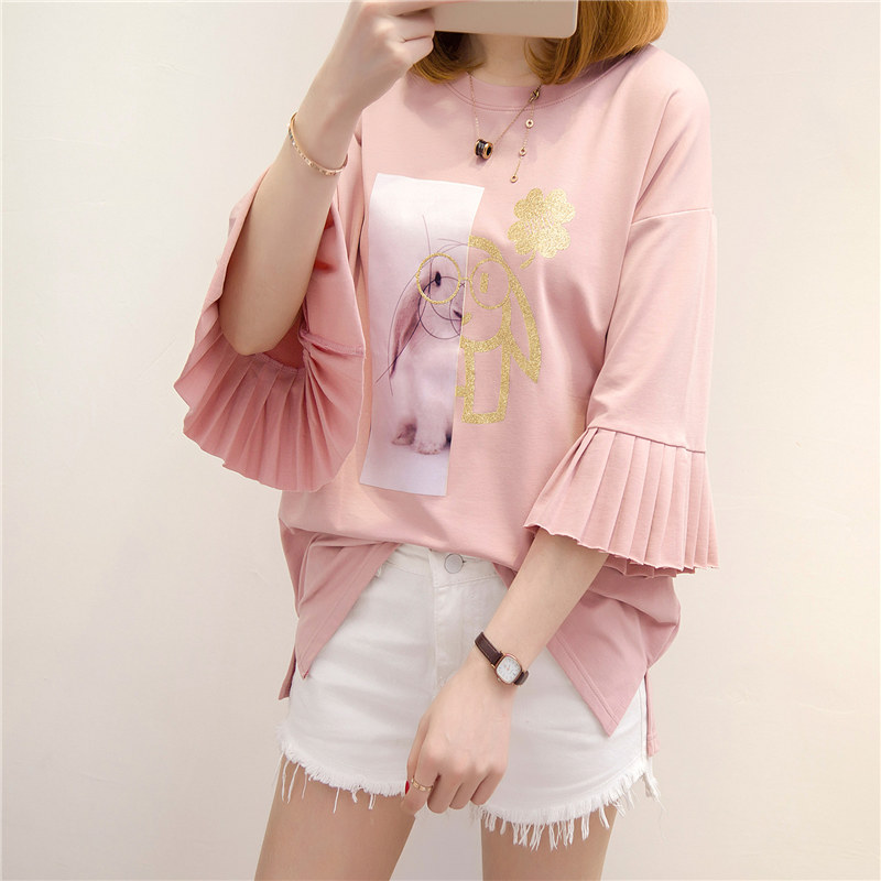 夏裝新款女上衣t恤女中長袖半袖韓版短袖打底衫百搭寬松體恤