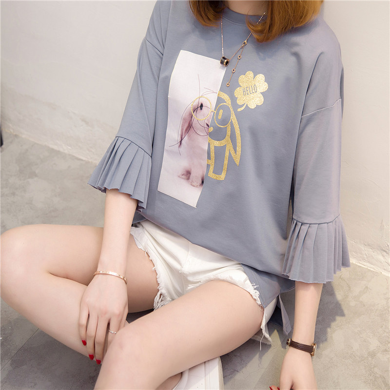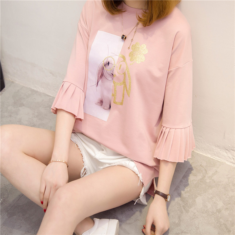 / 夏裝新款女上衣t恤女中長袖半袖韓版短袖打底衫百搭寬松體恤