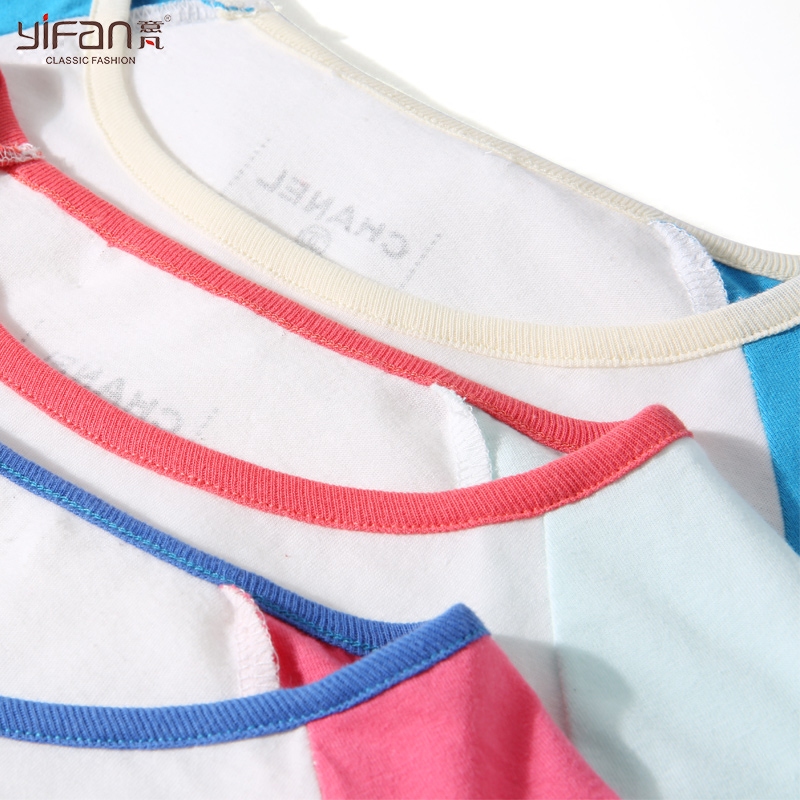 / 春夏韓版圓領套頭撞色短袖T恤女裝字母印花寬松打底上衣新款