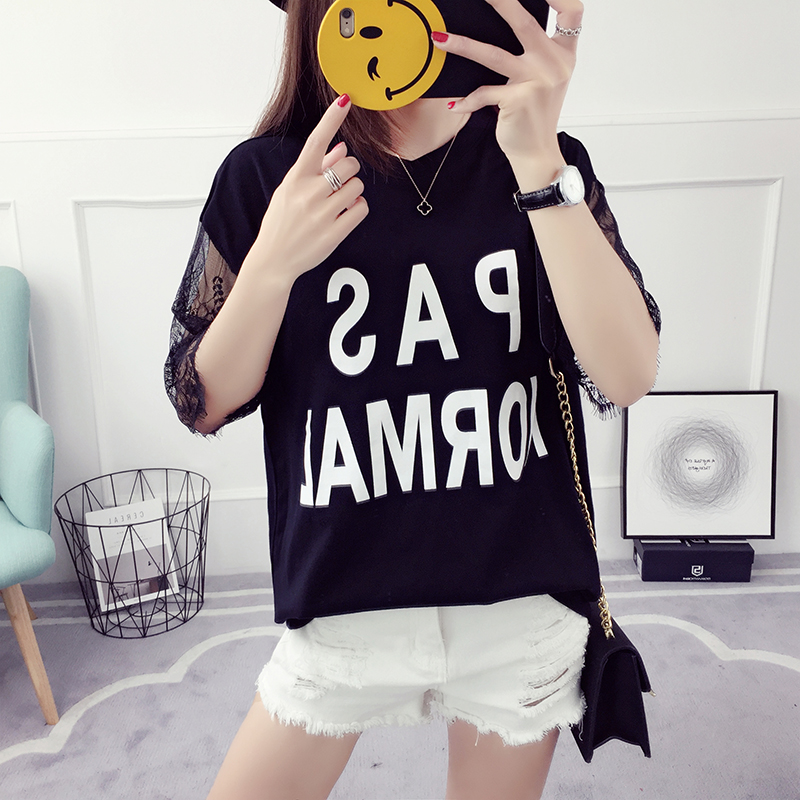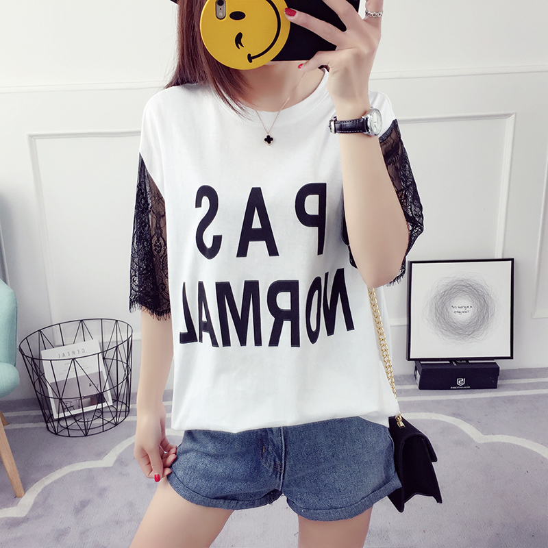 字母t恤女短袖上衣女夏新款寬松韓版學生百搭半截袖衣服體恤