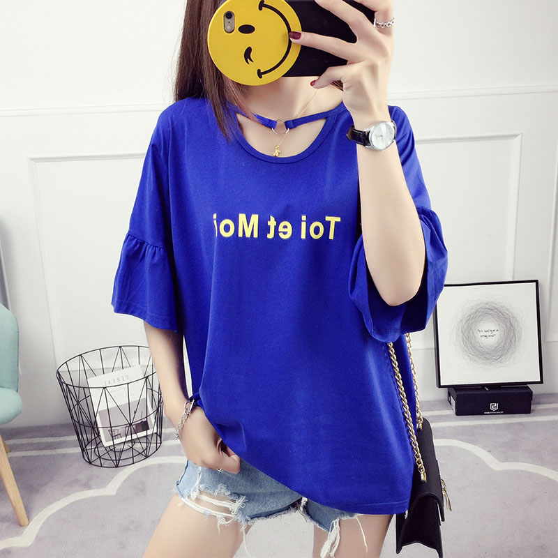/ 喇叭袖t恤短袖上衣女夏裝新款韓版學生百搭寬松夏季體恤衫潮