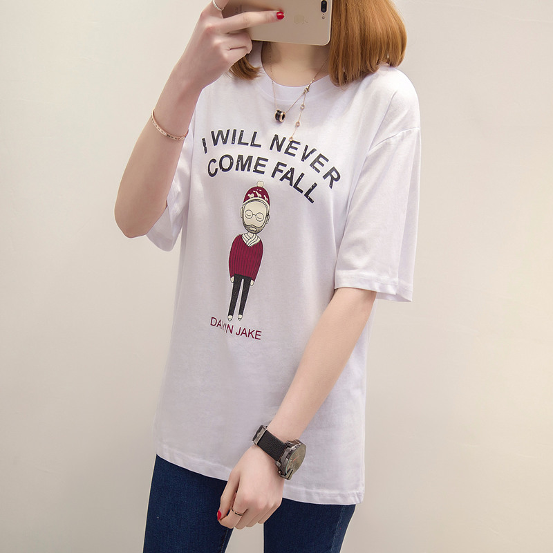 衣服女裝春裝新款潮短袖t恤女上衣寬松卡通韓版打底衫女體恤