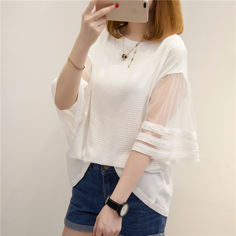 / 夏裝新款女bf風白色t恤女韓版網紗小清新上衣女夏短袖體恤衫
