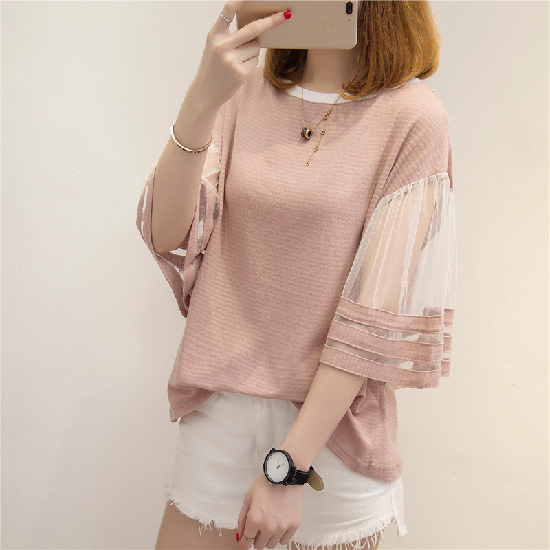 夏裝新款女bf風白色t恤女韓版網紗小清新上衣女夏短袖體恤衫