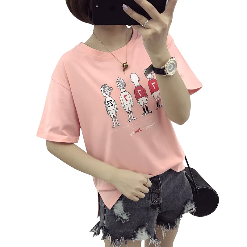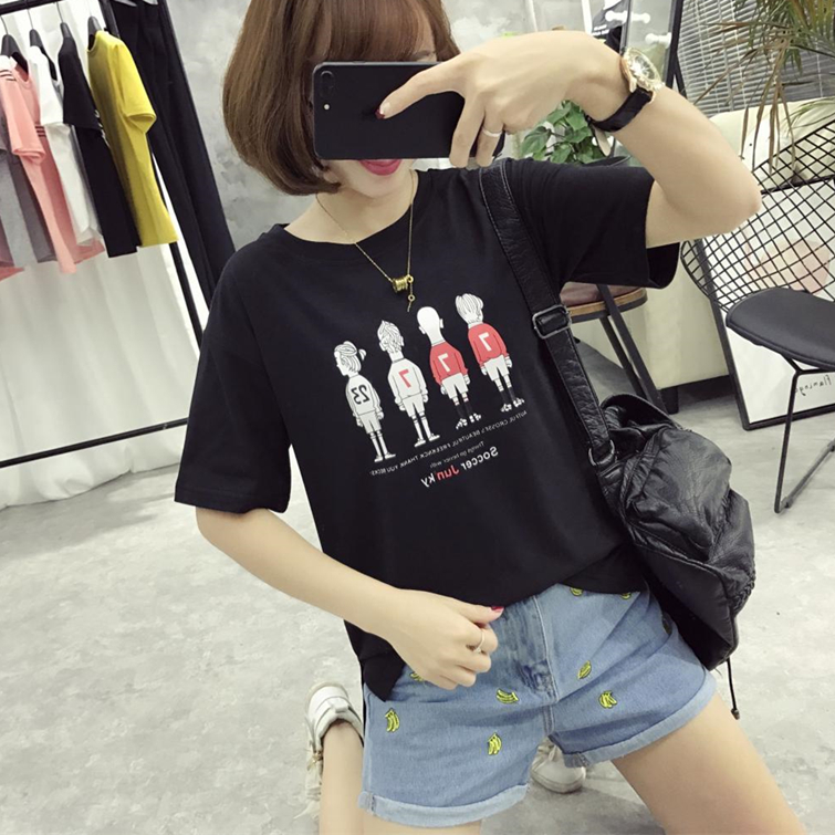 / 韓版夏季圓領上衣女裝學生印花短袖女白色打底衫潮寬松半袖T恤女